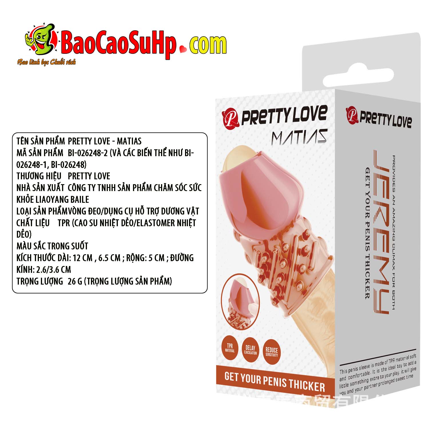 Được làm từ chất liệu TPR mềm mượt, một loại cao su nhiệt dẻo thân thiện và an toàn, bao cao su donden Prettylove mang đến cảm giác dễ chịu, êm ái khi sử dụng. TPR còn nổi bật với độ bền cao và tính linh hoạt tuyệt vời, giúp ôm sát vừa vặn dù kích thước dương vật có biến đổi. Đặc biệt, thiết kế đầu hở thông minh giúp nam giới vẫn cảm nhận được cảm giác thật tự nhiên trong lúc xuất tinh, tạo sự hương vị mới lạ, thú vị cho cuộc “yêu”.