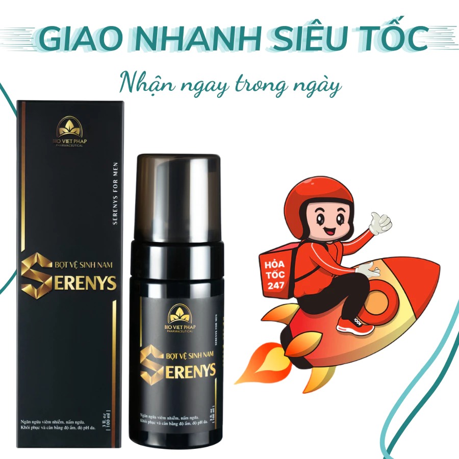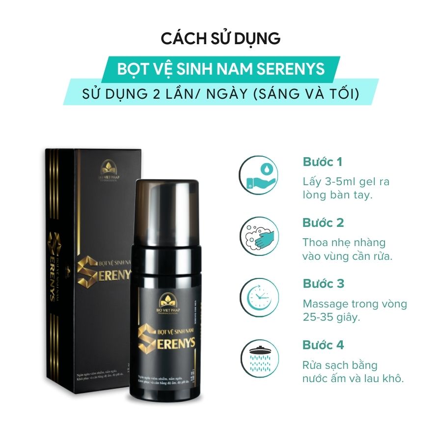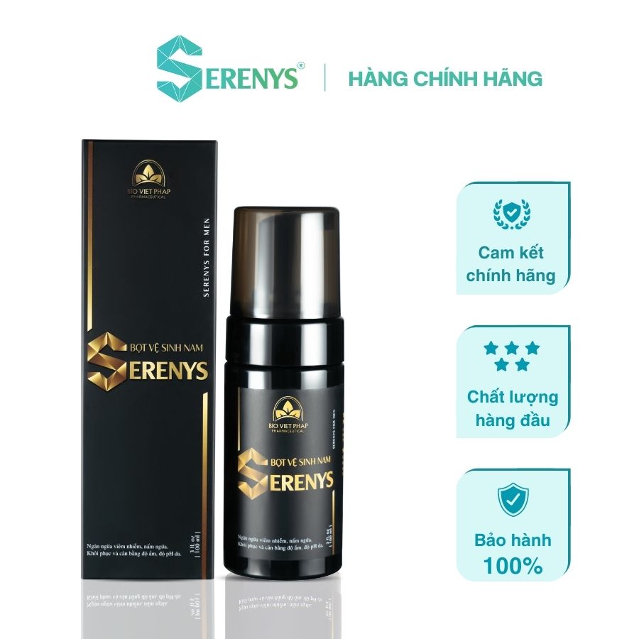 Bọt vệ sinh nam Serenys 100ml – Giải pháp làm sạch và chăm sóc vùng kín nam giới hiệu quả, an toàn nhất hiện nay. Sản phẩm sở hữu chất bọt siêu mịn, nhẹ nhàng làm sạch sâu, đồng thời ngăn ngừa viêm nhiễm, nấm ngứa, giúp bảo vệ sức khỏe vùng nhạy cảm quý ông.