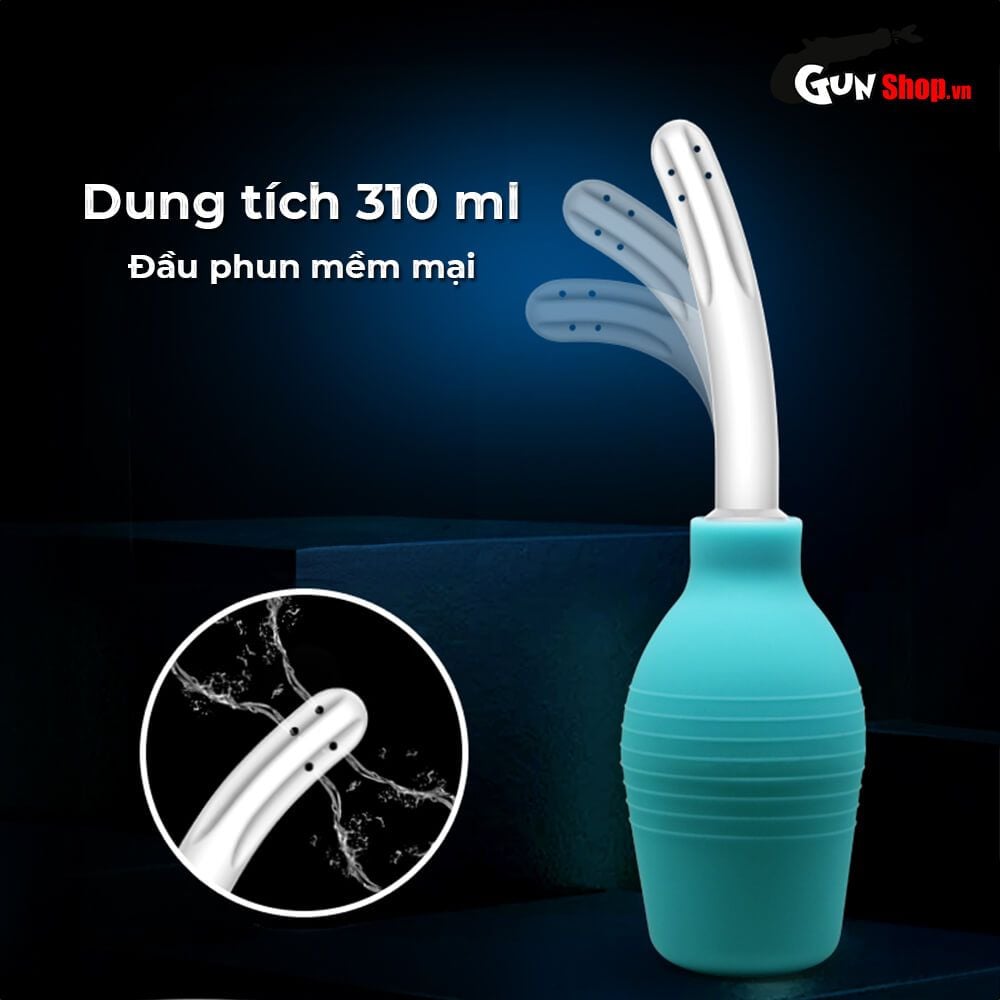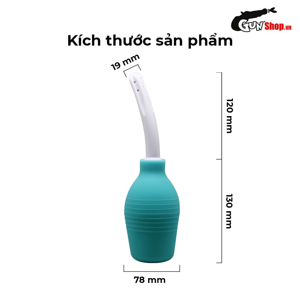 Đặc điểm: Dùng cơ chế hút đẩy từ lực đàn hồi tự nhiên thụt rửa hậu môn cũ , vòi cong dạng hồ lô đấu giá . Dung tích chứa nước: 310ml.