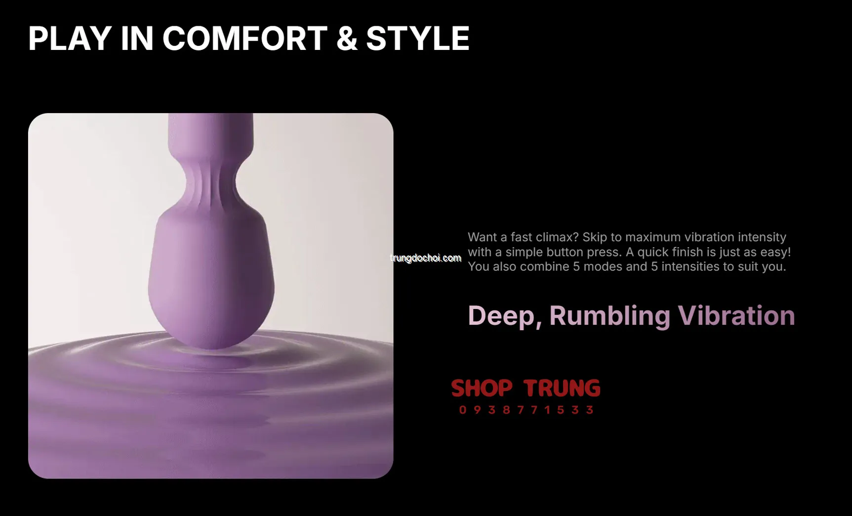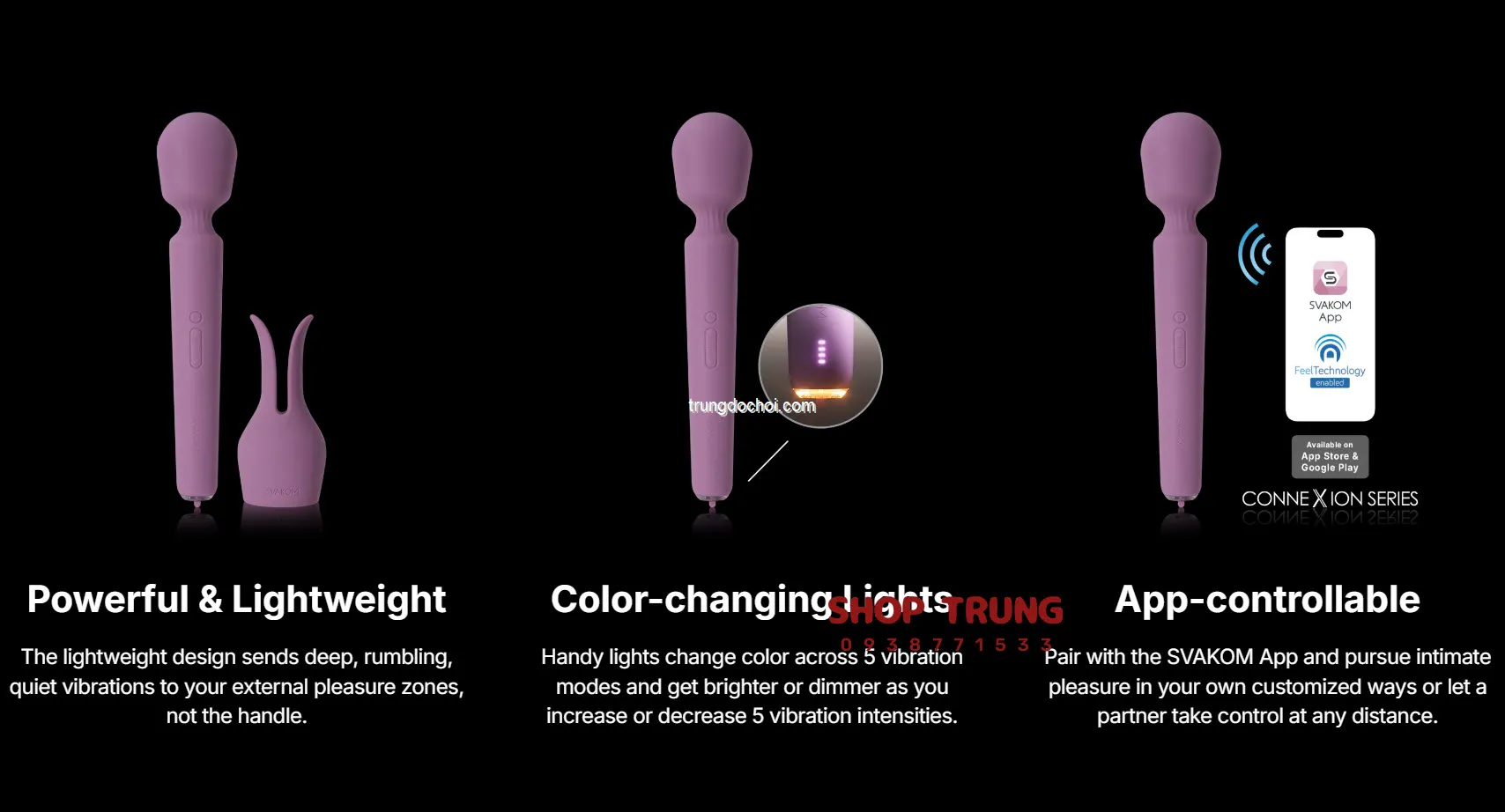 • "Chức năng điều khiển từ xa rất tiện lợi, giúp tôi và bạn đời có thêm trải nghiệm thú vị. Sản phẩm rất đáng tiền mua!" — Trần Văn Hùng