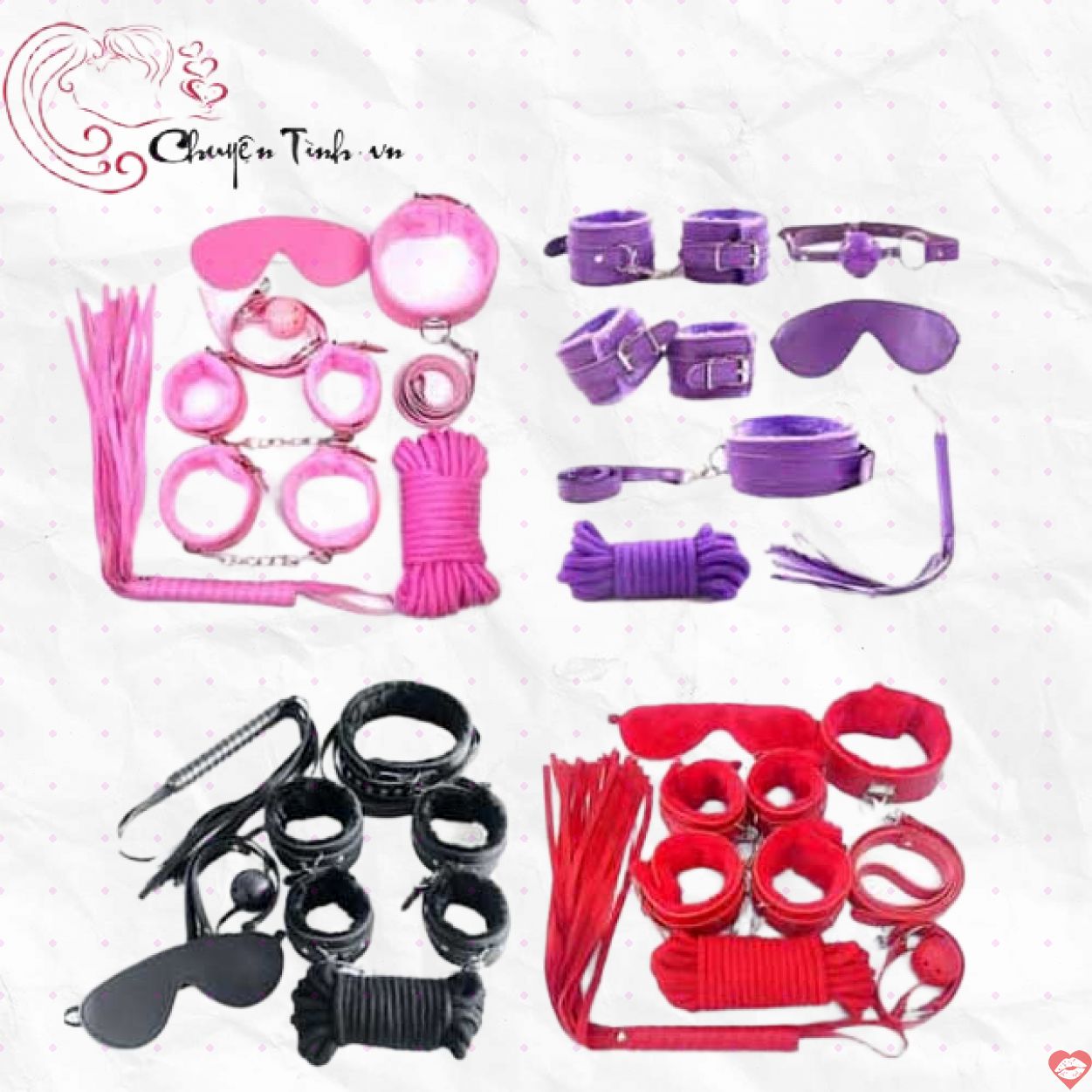Bộ dụng cụ này giúp các đôi có thể cùng nhau khám phá và trải nghiệm những tư thế, cảm xúc thăng hoa như trong phim JAV. Các nàng có thể thổn thức vì bị trói buộc, hành hạ nhẹ nhàng ở các điểm nhạy cảm như ngực, mông, cô bé, còn các chàng thì trở thành người điều khiển đầy quyền lực và quyến rũ. Chính sự kết hợp này sẽ làm bùng nổ cảm xúc, dễ dàng đạt đến cực khoái, nâng cao sự gắn kết và chân thực trong mỗi cuộc yêu.