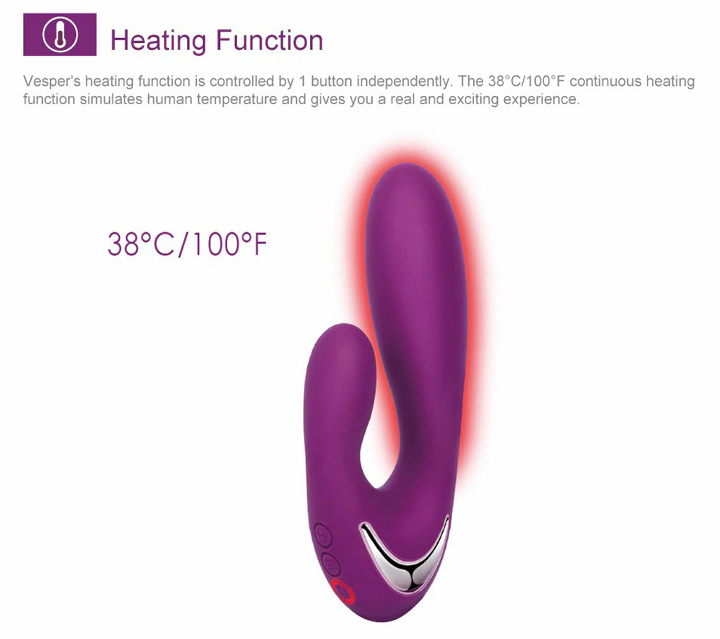 Sưởi ấm là tính năng độc đáo chỉ riêng SVAKOM Vesper sở hữu, điều khiển bằng nút bấm riêng biệt. Nhiệt độ ổn định ở mức 38°C mô phỏng nhiệt độ tự nhiên cơ thể, đem lại trải nghiệm ấm áp, mềm mại và vô cùng dễ chịu. Tính năng này khiến cuộc yêu trở nên trọn vẹn hơn bao giờ hết.
