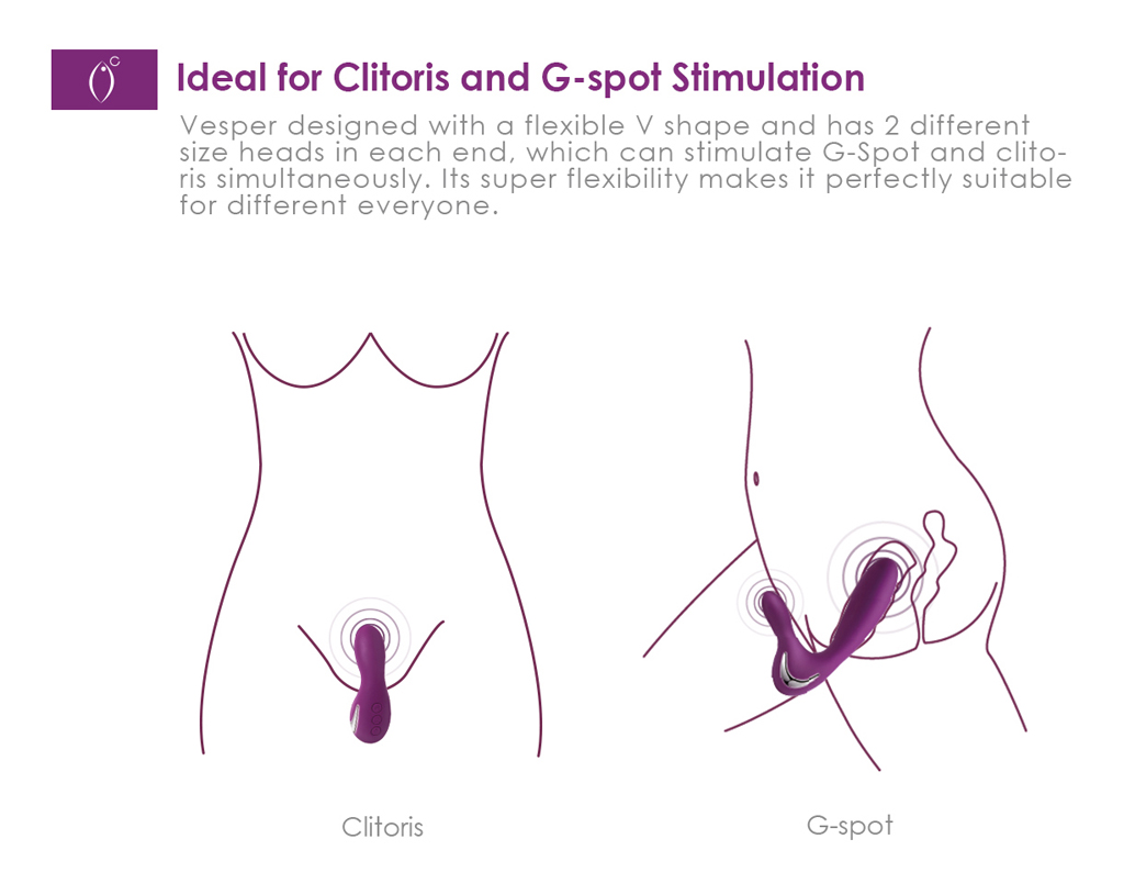 Điểm nổi bật của sản phẩm là thiết kế hình chữ V với hai đầu có kích thước khác biệt, giúp ôm sát để kích thích đồng thời điểm G và mồng đốc hiệu quả. Chất liệu silicon mềm mại, an toàn cho da, cùng tính linh hoạt cao mang lại cảm giác dễ chịu và tiện dụng với mọi người dùng.